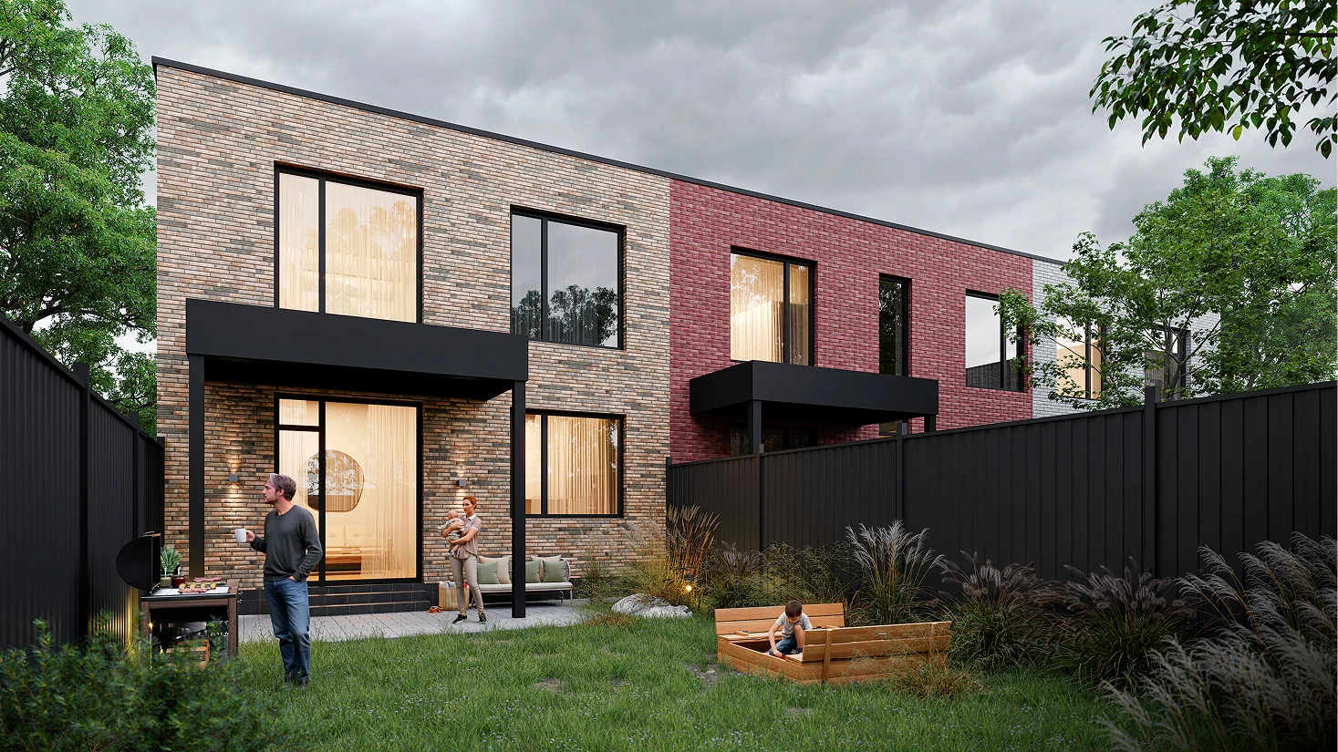 Каждый таунхаус представляет собой двухэтажное здание площадью от 109 до 143 м². В зависимости от выбранной планировки в доме предусмотрено 3–4 спален, что идеально подходит для больших семей