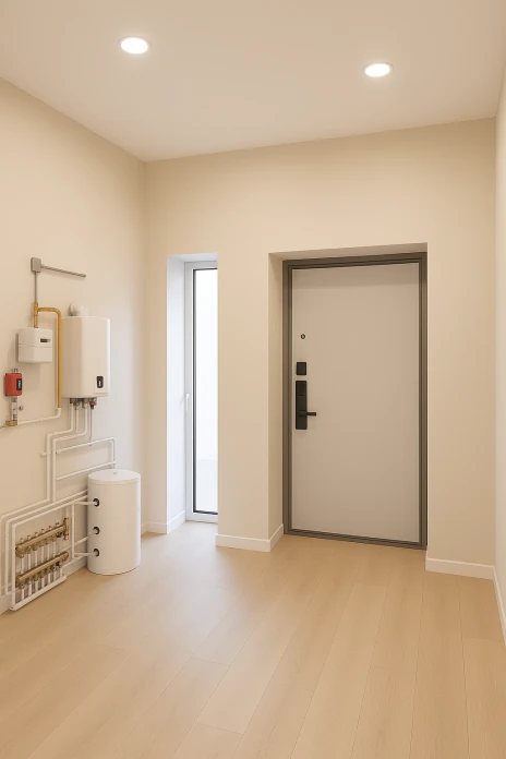 Внутренние работы включают электрику по СП, двухтрубную систему отопления с газовым